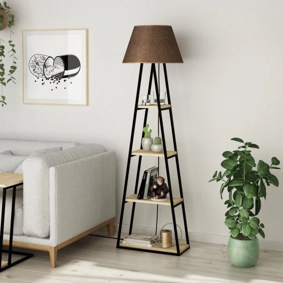 4 étagères pratiques : Ce lampadaire est équipé de 4 étagères intégrées en bois Chêne clair, idéales pour exposer vos objets de décoration, ranger des livres ou organiser vos accessoires.
